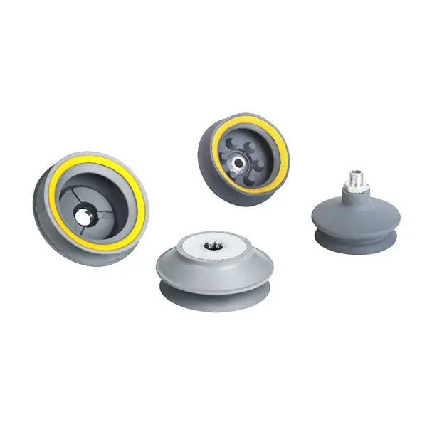 - Przyssawki dzwonkowe (fałdowe) – pozwalają na pewne chwytanie elementów o nierównych powierzchniach lub niewielkich krzywiznach.