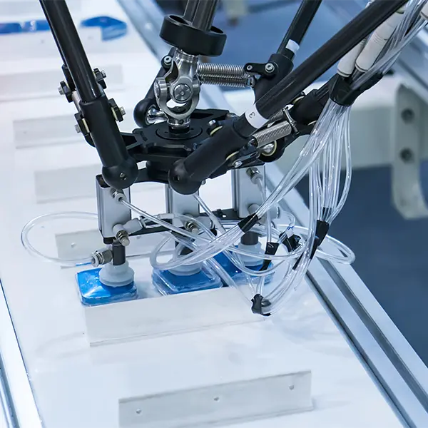 - Roboty pick & place – szybki i bezpieczny transport lekkich i średnich opakowań w liniach produkcyjnych.