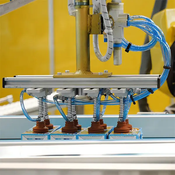 - Przyssawki wielogniazdowe – przenoszenie kilku opakowań jednocześnie, zwiększające wydajność automatycznych linii pakujących.