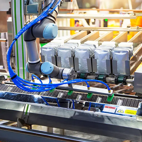 - Linia pakowania produktów spożywczych, chemicznych i kosmetycznych w folię lub karton.