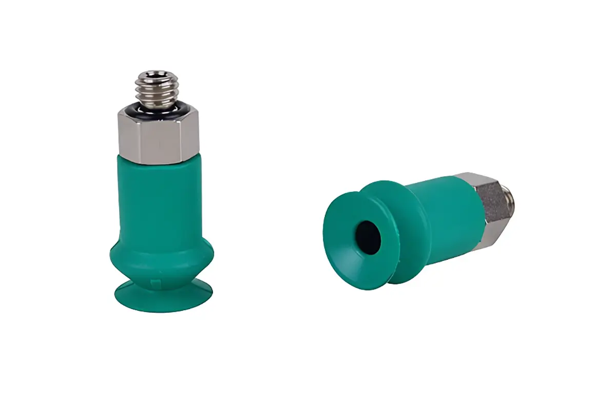 - Małe przyssawki mikro / Ø10–Ø20 mm — stosowane w systemach wysokiej częstotliwości i maszynach sortujących etykiety.